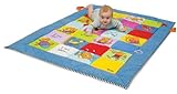 Taf Toys TAF10845, This Jumbo size activity mat measure 39 x 59 inch and made with an extra puffy padded material for extra comfort. Colorful, lovable illustrations stimulate parent-baby interaction and baby's emotional intelligence. Baby Safe Mirror, Plastc Rings, Teether and Crinkling Tail are attached to the mat. Fold easily and comes with easy to carry handles. ...